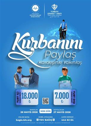 2026 Yılında Yurtiçi Kurban Bağış Bedeli 18.000,00 ₺ ve Yurtdışı Kurban Bağış Bedeli 7.000,00 ₺ olarak belirlendi. Kurban bağışlarınız Türkiye Diyanet Vakfı wep sayfası "bagis.tdv.org" adresinden, Cami görevlilerimizden ve müftülüklerimizden yapabilirsiniz.