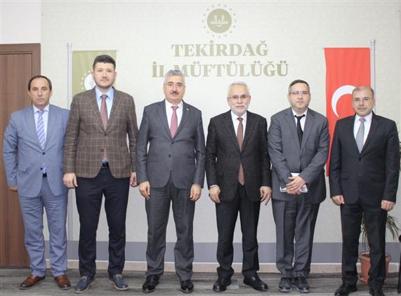 Tekirdağ Namık Kemal Üniversitesi Rektörü Prof. Dr. Mümin Şahin, TNKÜ Genel Sekreteri Gökhan Saygı, Genel Sekreter Yrd. İlhan Koçer, Yapı İşleri ve Teknik Daire Başkanı Dr. Öğr. Üyesi Ahmet Bal, İl Müftüsü Mustafa Bilgiç’i makamında ziyaret etti. Ziyarette Süleymanpaşa Müftüsü İbrahim Türedioğlu da hazır bulundu.
